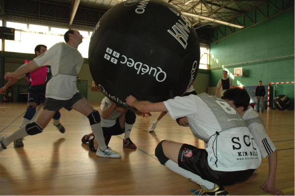 Souvent appelé le volley géant, le kin ball se joue en salle à l’aide d’un ballon quelque peu imposant puisqu’il mesure 1 mètre 22 de diamètre. Le but du jeu pour les trois équipes de quatre joueurs s’affrontant est d’attraper la balle avant qu’elle ne touche le sol. On peut également noter qu’au moment du service, l’ensemble des joueurs a l’obligation d’être en contact avec le ballon.