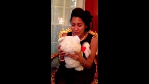 Une jeune femme éclate en sanglots en découvrant son cadeau de Noël